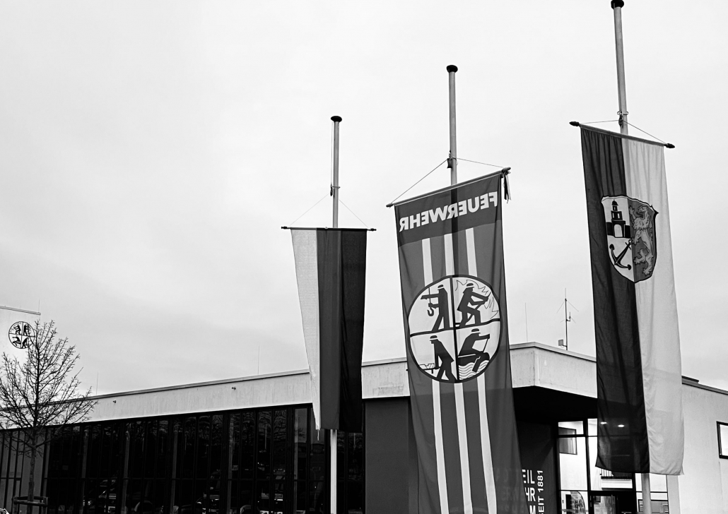 Zum Gedenken, aber auch zu Ehren von „Schorsch“, wehen die Fahnen am Feuerwehrhaus in Ginsheim auf Halbmast. Auch die Einsatzfahrzeuge tragen als Zeichen der Anteilnahme in diesen Tagen Trauerflor.